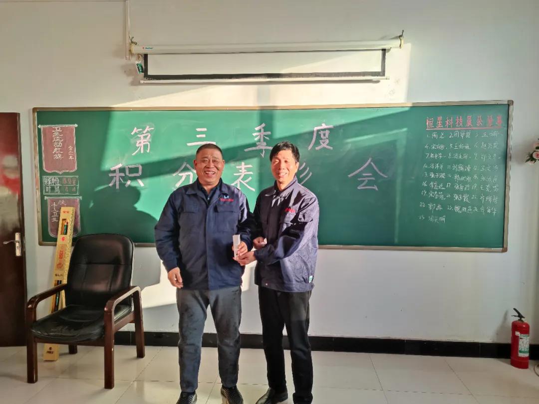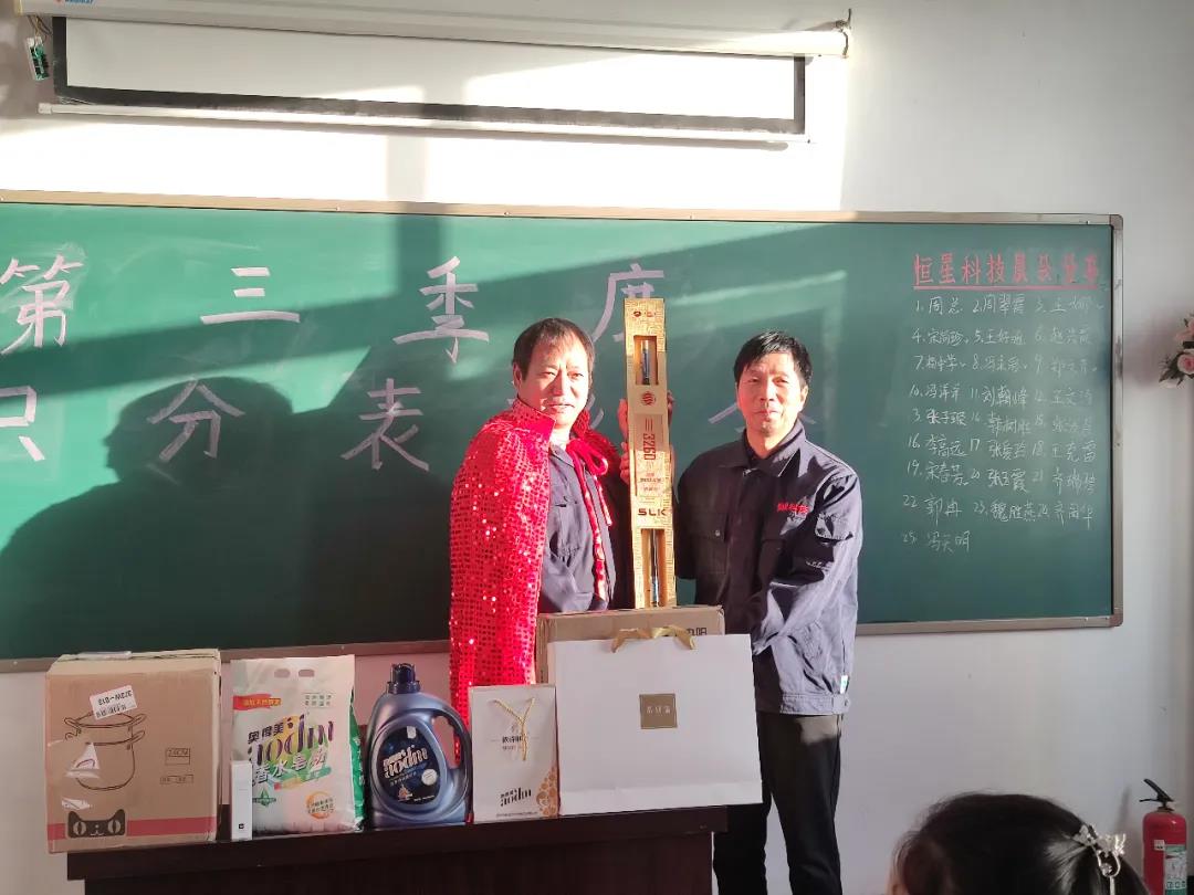 頒發(fā)的是本季度積分榮獲第一名的優(yōu)秀員工,也就是本季度的積分王,他就是楊中學,以熱烈掌聲歡迎積分王上臺,由周忠太總經(jīng)理頒發(fā)第一名的獎品,獲獎人員發(fā)表獲獎感言。